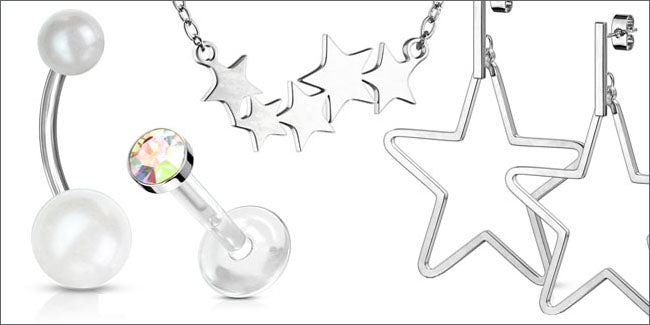 Piercingsmycket är gjort av kirurgiskt stål och kulor är syntetiskt sten.