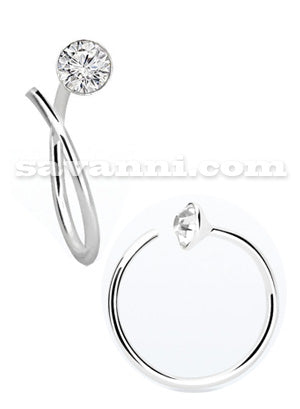 En öppen silverring med klar zircon. Silverringen är en öppen ring som inte har något lås. För att sätta silverringen på plats ska ringen vridas åt sidan tills den öppnas och sedan vridas tillbaka tills den går fast. Silverringen kan bland annat användas som nässmycke.