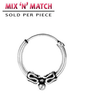 Den här unika bali-öronringen har en alldeles egen orientalisk stil. Bali-örhängets tvinnade mönster skapar en stiligt etnisk helhet. Bali-ringens detaljer har framhävts genom att de gjorts mörkare. Tillför lite bohemisk charm till din stil med den här häftiga bali-öronringen.
