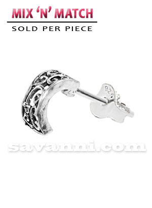 Ett rakt nässmycke av silver vars topp smyckats med en liten dekoration i form av en pil. Nässmyckets bas består av en rak stav av silver som kan böjas exempelvis för hand eller med en pincett. Genom att böja det raka nässmycket hålls det bättre på plats i din näspiercing.