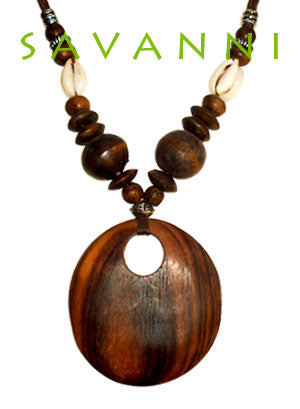 Ett halsband av trä. Halsbandet kann fås i olika färger – välj det alternativ du föredrar i menyn.
