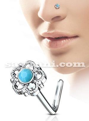 Ett nässmycke med en rak stav som gjorts av silver och som prytts med en glittrande strass-sten på smyckets topp. Nässmyckets gnistrande strass-sten har limmats fast på nässmycket. Bakom nässmycket finns en rak stav av silver som lätt går att böja exempelvis med en pincett eller med fingrarna, så att nässmycket hålls bra på plats. Den raka nässkruvens gnistrande strass-sten kan fås i olika färger. Färgen på nässmyckets strass-sten kan väljas i menyn.