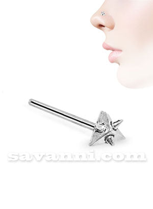 Ett rakt nässmycke av silver som smyckats med en pyramid. Den raka nässkruvens bas består av en rak stav i silver som kan böjas exempelvis för hand eller med en pincett. Genom att böja den raka piercingstaven hålls nässmycket bättre på plats i din näspiercing.