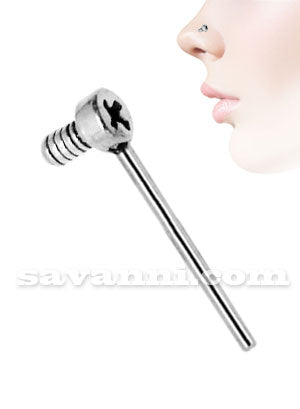 Den här raka nässkruven är gjord av vitt guld och dess ända har prytts med en glittrande vacker nätt klar zirkon. På ändan av nässmyckets fäste, som är gjort av vitt guld, sitter en liten kula som gör att smycket hålls bra på plats.